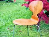 Arne Jacobsen Myre Model 3100 Teakstol En unik mulighed for at erhverve en velholdt Arne Jacobsen Myre model 3100 teakstol blev tegnet i 1952. Denne klassiske spisebordsstol er udført i original teaktræ og har stålben. Stolen er i MEGET god stand med en fast ryg, og den har været omhyggeligt vedligeholdt gennem årene. Perfekt som dekorationsmøbel eller til samlere, der mangler den originale myre. Model: Arne Jacobsen Myre 3100 Materiale: Original teaktræ og stål Søgeord: Stolen går også under navnene "Aj Myren 3100," "Aj Spisebordsstol," "Aj Teak," og "Arne Jacobsen Teak. Syveren 3107"