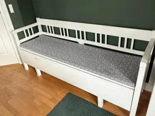 Antik snedkerhøvlbænk som arbejdsbord