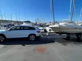 Vi har bl.a. selv brugt den til at cruise rundt i de københavnske kanaler og sommerture i det sydfynske øhav – den lave profil gør, at den kan komme under broer og ind i små indløb uden problemer. Samtidig er den stabil og tryg med høj ræling, hvilket gør den ideel til familier med mindre børn ombord. Perfekt til: - Lystfiskeren - Små weekendture - Familieudflugter - Vandsport og hygge - Cruise i havne og kanaler ⚙️ Motor & Ydelse 90 HK 2T-motor - Benzin (serviceret sidste år) Ekstra Suzuki 10 HK backup-motor 🚗 Trailer medfølger 1300 kg Thule bådtrailer El-optræk 🛥 Udstyr & Komfort Teaktræs dæk. Rigtig flot og behagligt med bare tær om sommeren. Hynder til alle stole Dækshynder (nogle trykknapper bør udskiftes) Solseng til dækket Midterpude i kahyt Bord til montering i skrue-socket på dækket Garmin Nüvi GPS/Fish Finder (dækker hele Danmark + dele af Sverige) Anker Fortøjningsreb Fendere 🌦 Kalecher Hvid kaleche med sideruder ✔ Kan slås ned i godt vejr ✔ Kan lukkes helt af i cockpittet ved dårligt vejr Havnekaleche til vinterafdækning / opbevaring på land 🎉 Ekstra sjov til familien Tube/ring til 2 personer (kan medfølge) Våddragter (str. ca. 8–16 år)