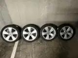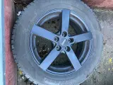 Næsten nye dæk og fælge 5 hullers fra dec. 23 kørt under 1000 km jeg skiftede bil feb. 24. Passer til Nissan/Renault og sikkert også andre. Der udover er der også hjulkapsler 60633115
