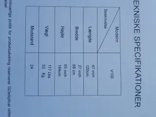 - Maksimal brugervægt: 100 kg