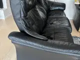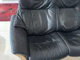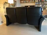 Rigtig flot og komfortabel Stressless sofa. Der er rigtig læder på alle sider. Ryggen på hver af sæderne kan, mens du sidder, lænes tilbage samtidig med at sædet skydes lidt frem. Fremstillet på anerkendt fabrik i Norge.