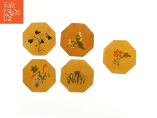 Træbrikker med nordiske blomstermotiver (str. 5 stk 14x14 cm)