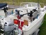 Maxima 550 – søsat 2023 med 20 HK Mercury motor – Komfort, oplevelser og frihed på vandet Er du på udkig efter en moderne, stilren og alsidig båd, der kan bruges til alt fra hyggelige aftenture til uforglemmelige sommerdage med venner og familie? Så er denne Maxima 550 fra søsat i 2023, med en økonomisk og driftssikker 20 HK Mercury motor, det oplagte valg. Båden har indtil nu sejlet på Silkeborgsøerne, et af Danmarks smukkeste naturområder, og den fremstår i flot stand. Her har den givet ro på stille aftenture, hygge på solrige sommerdage og uforglemmelige oplevelser, når livet på søen folder sig ud. At sejle på Silkeborgsøerne i en Maxima 550 er noget helt særligt: du glider lydløst forbi de grønne skovbryn, lægger til ved de små badebroer for en dukkert, eller ligger til ved en af de hyggelige søcafeer og nyder et glas vin i solnedgangen. Men Maxima 550 begrænser sig ikke til søerne. Den er også oplagt til sejlads i Københavns kanaler, hvor byens puls møder vandets ro. Forestil dig en sommerdag, hvor du sejler gennem Christianshavns idylliske kanaler, lægger til ved Papirøen for en is, eller nyder et glas kold rosé, mens du langsomt driver forbi Operahuset og Nyhavn. Med sit rummelige cockpit og komfortable siddepladser er båden perfekt til at samle venner eller familie ombord. Maxima 550 er desuden den ideelle båd, hvis du vil være en del af de mange festlige begivenheder på vandet. På Silkeborgsøerne kan du opleve det spektakulære fyrværkerishow under Hjejlefesten, hvor bådene samles på vandet, og nattehimlen eksploderer i farver. Eller du kan tage del i Københavns unikke sommerstemning, når kanalerne summer af liv under Copenhagen Jazz Festival eller til events som Distortion Ø, hvor bådene ligger side om side, og musikken spiller ind over vandet. Kort sagt: Maxima 550 er en båd, der kombinerer flot design med funktionalitet og hygge. Den har et stort cockpit, der indbyder til samvær, masser af siddepladser og en Mercury 20 HK motor, der giver dig tilstrækkelig kraft til behagelig sejlads, men samtidig holder driftsomkostningerne nede. Den er let at manøvrere, nem at holde, og du får en båd, der både er praktisk og indbyder til luksuriøse oplevelser på vandet.