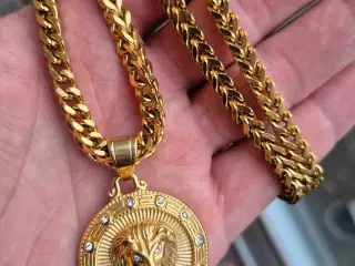 Ny kongekæde guld og sort 8x8 mm.