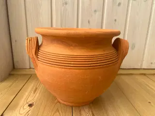 Sorte krukker beplantet med flotte røde hortensia