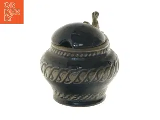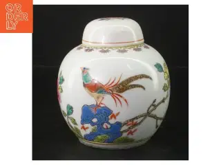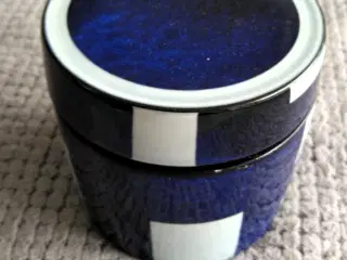 Porcelæn krukke med låg (str. Ø. 7 cm. længde. 9 cm)
