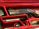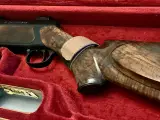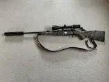 Sauer 202 i kaliber .308 win med rem, montage til optik og lyddæmper. Tysk kvalitet når det er bedst, med behageligt aftræk, både med eller uden stiksnellen, silkeblød betjening af bundstykket samt tæt og præcis kugleplacering. Har været min siden 2020, og blevet behandlet godt. Der medfølger: System og løb i .308 win., som er blevet cerakotebehandlet sidste år ved Korsholm og fremstår nærmest nyt. Piben er 58 cm lang, og leverer høj udgangshastighed og præcision. Syntestisk camoskæfte, og her må jeg erkende at Sauers ellers høje kvalitet ikke er afspejlet i malingen af skæftet, da der nolge steder er hvide plamager hvor camoen er "skrabet af" (se billederne). Dette er dog udelukkende komsmetisk, og påvirker på ingen måde skydning eller generelt brug af riflen. Leupold QRW ringe og montage, der sikrer hurtig skifte mellem optik. Schultz & Larsen Superdome 8 mm lyddæmper. Solid dansk kvalitet, med mulighed for tilpasning af længde og vægt. Neopren rem købt fra ny i Østjysk. Kikkert medfølger som udgangspunkt ikke. Sælges da jeg er blevet interesseret i Sako 90'eren. Giv gerne et bud på riflen, så kan vi snakke om det.