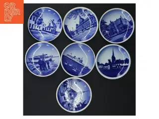 Blå og hvide porcelænsplatter, 7 stykker fra Aluminia (str. Ø. 8,5 cm. 7 styk)