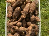 Før plantning er det en god ide at lægge knoldene i lunkent vand, gerne i mindst et par timer, så de kan suge fugt. Plant knoldene i ca. 5 cm dybde og med ca. samme afstand imellem.