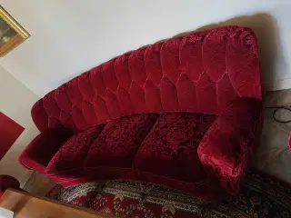 Jaguarrød lædersofa & læderstol /Mogens Hansen