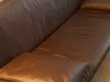 Sofa i brun kunstlæder. Har mindre brugsspor. Leveres ikke