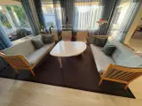 Vi sælger vores sofa, bord og tæppe samlet eller enkeltvis: (Meget lidt brugt) Pris Individuelt: Sofa (Stue) 4990kr Bord + Tæppe 300kr Pris samlet 5250kr