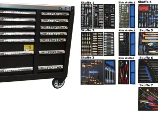 Metallo Værktøjsvogn XXL med værktøj og 8 skuffer og sideskab