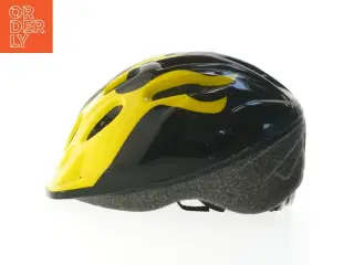 Cykelhjelm med gul og sort flamme design fra Biltema (str. m)
