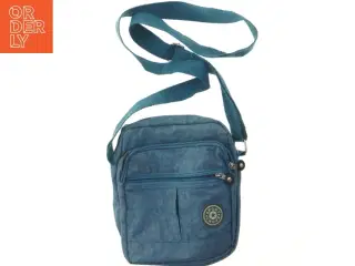 Lille sort skuldertaske med dekorativ rem (str. 18x23 cm)
